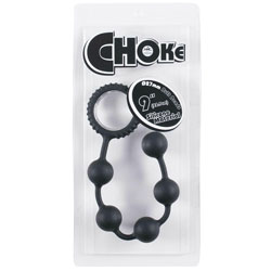 9 Inch Choke Anal Beads with Silver Plating Ring Black