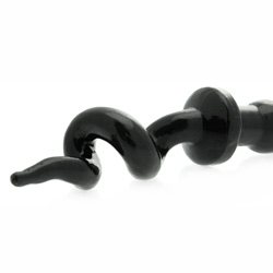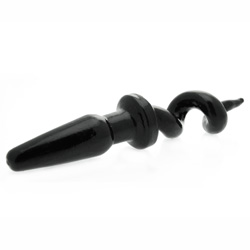 Category: Butt Plugs Code: 955-2018 Humiliate and make them squeal with this black pig tail butt plug. Made of soft rubber, it measures 9 inches total of which 4 inches are insertable and 1.25 inches in diameter at its widest point. Color: Black Brand: Master Series