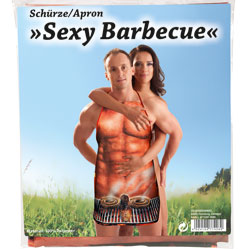 Category: Funny Sex Toys Code: 955-2109 Apron with a naked Arnold torso as if standing behind a barbecue grill. The meat on the grill shapes a penis. With halterneck and tie up back. 100 percent polyester. Brand: Various Toy Brands