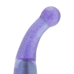 Category: G-Spot Vibrators Code: 955-2681 The Glitterous G Spot Vibe has an 8 G Spot curved shaft that is made from ultra soft, glitter filled jelly. It has a multi speed controller at the base for you to choose the speed Color: Purple Diameter: 2 Inches Brand: California Exotic