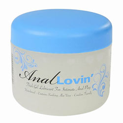 Category: Lubricants Code: 955-2249 This wonderfully rich lube is designed especially for anal play. It is waterbased, condom friendly and contains soothing Aloe Vera. The tub contains 100ml. Dont go anal loving without Anal Lovin. Brand: Various Toy Brands
