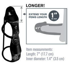 Category: Penis Sleeves Code: 955-2027 Turn your penis into an instant pleasure machine with the incredible Fantasy Xtensions. Now you can be all the man you can be and satisfy your partner with this easy to use erection enhancer. Developed as a safe, affordable, non surgical alternative to expensive medical procedures and pills, your Fantasy Xtension will give you the biggest, thickest, most satisfying pleasure rod you ever imagined. Perfect for men with ED and midway performance problems, your new enhancer will deliver results that both partners will love. Color: Black Brand: PipeDream