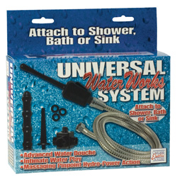 Category: Personal Hygiene Code: 955-2950 The Universal Water Works System is quick and easy to set up and can be attached to your shower, bath or sink Color: Black Brand: California Exotic
