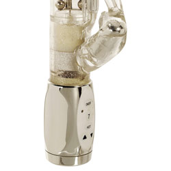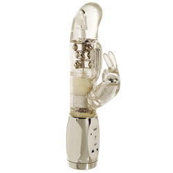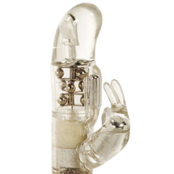 Category: Rabbit Vibrators Code: 955-3128 G spot rabbit with beads and 3 levels of vibration, A clitoral vibrator with 7 levels of vibration pulsation and escalation. Hot button to send the abbit in to a random pattern, Waterproof led lights and mini g bullet on the shaft. Color: Clear Diameter: 1.75 Inches Brand: California Exotic