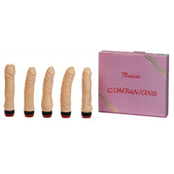 Bedside companions is a set of multi speed vibrators penis shaped flesh coloured.